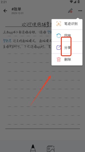 4、完成编辑后,笔记会自动同步到云端。你可以通过分享按钮将笔记以图片或文档形式发送给别人。
