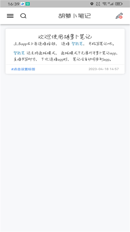 萝卜笔记,专业笔记记录软件,支持离线笔记、笔记内容识别、笔记分享。搭配罗博智能笔一起使用,可以将纸张上书写的内容在Android设备上直接转换为数字笔迹。