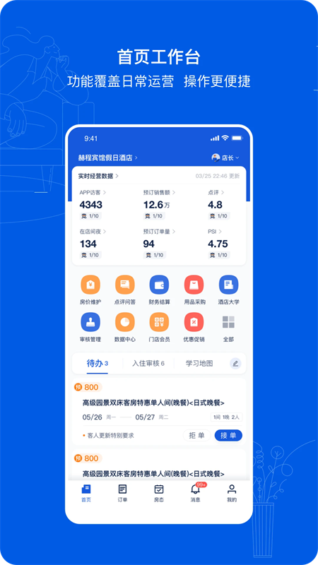快捷操作:高峰时段,首页即可快速检查修改房价房态,实时应对市场。