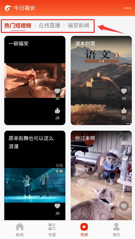 3、视频板块提供热门短视频、在线直播与地方新闻等视频内容。