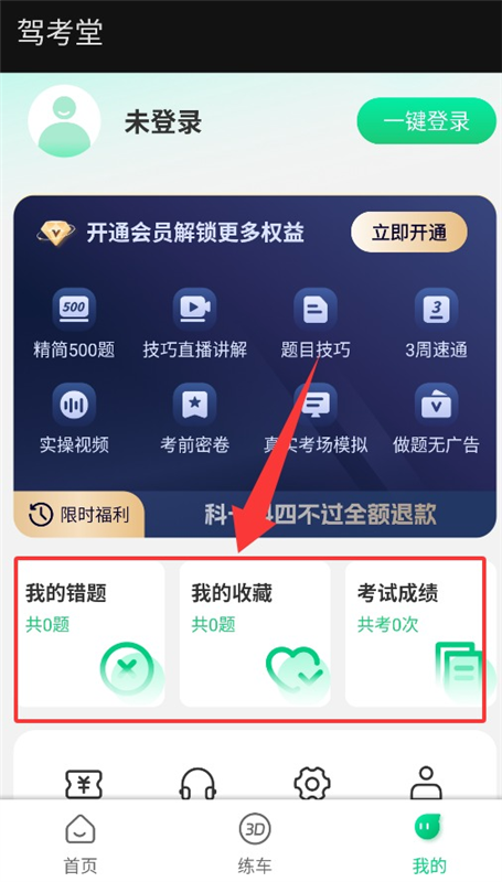 4、个人中心可查看我的错题、收藏内容及历史考试得分记录。