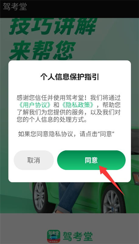1、首次启动将显示个人信息保护指引,需点击同意后方可进入。