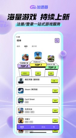 全球海量热门游戏,无需会员一键加速,支持王者荣耀国际服、PUBGM(地铁逃生)、暗区突围国际服、赛马娘、steam移动版、绝地求生、使命召唤战区、DNF地下城与勇士韩服、王者荣耀、和平精英、云顶之弈、蛋仔派对、代号鸳、妮姬胜利女神(Nikke)炉石传说国际服、我独自升级、英雄联盟国际服、咒术回战、云顶之弈等千款游戏加速,畅享全球手游。