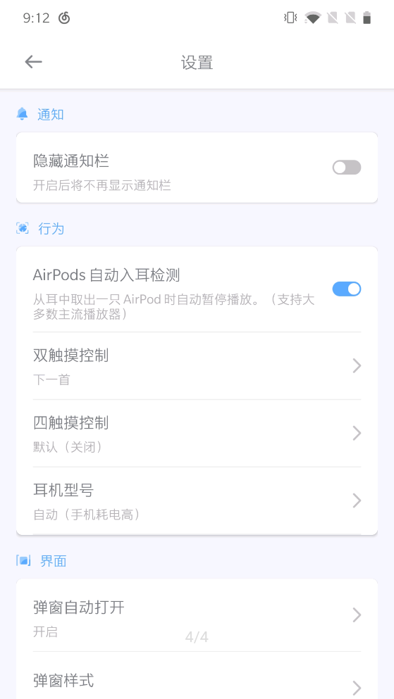 AndPods是为了解决Android用户使用AirPods蓝牙耳机无法查看电量等信息而开发的一款APP。 用户在耳机连接状态下,打开APP能很方便的查看AirPods蓝牙耳机的电量,并可以由用户的喜好设置相应的功能控制等。