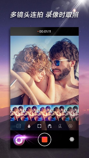 快捷操作:上下滑动切换构图镜头、左右滑动切换多彩滤镜。