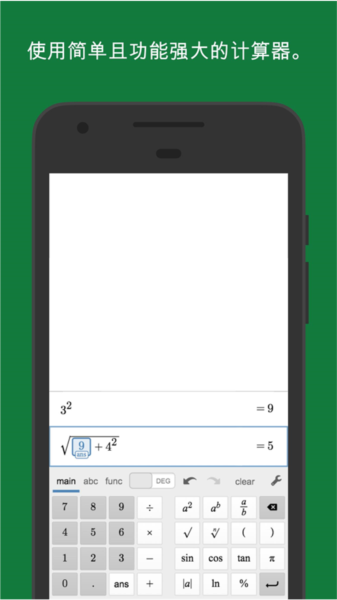 高级键盘快捷键: 提供多种键盘快捷键,如“ans”键、分数输入、“sqrt”求平方根等,极大地提高了用户的操作效率。