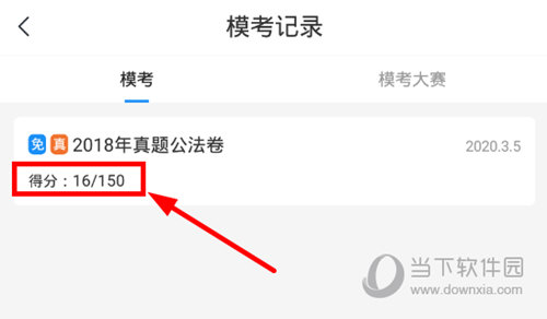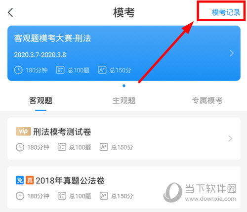 2、然后在“模考”的功能界面中选择右上角的“模考记录”功能。