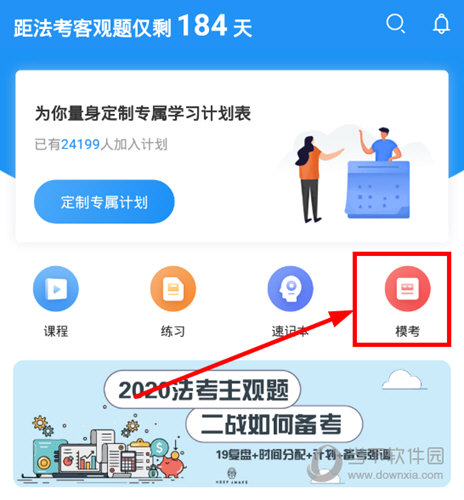 1、想要练习历年的真考题目需要点击进入到模考功能,同样的在首页选择点击模考功能。