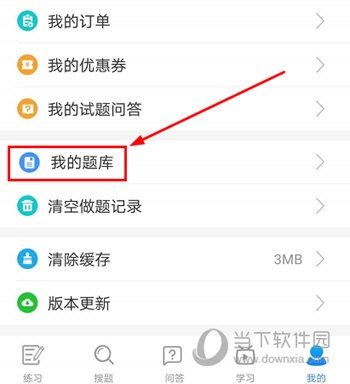 1、同样的进入到“我的”个人信息设置界面,选择“我的题库”功能按钮,点击进入即可。