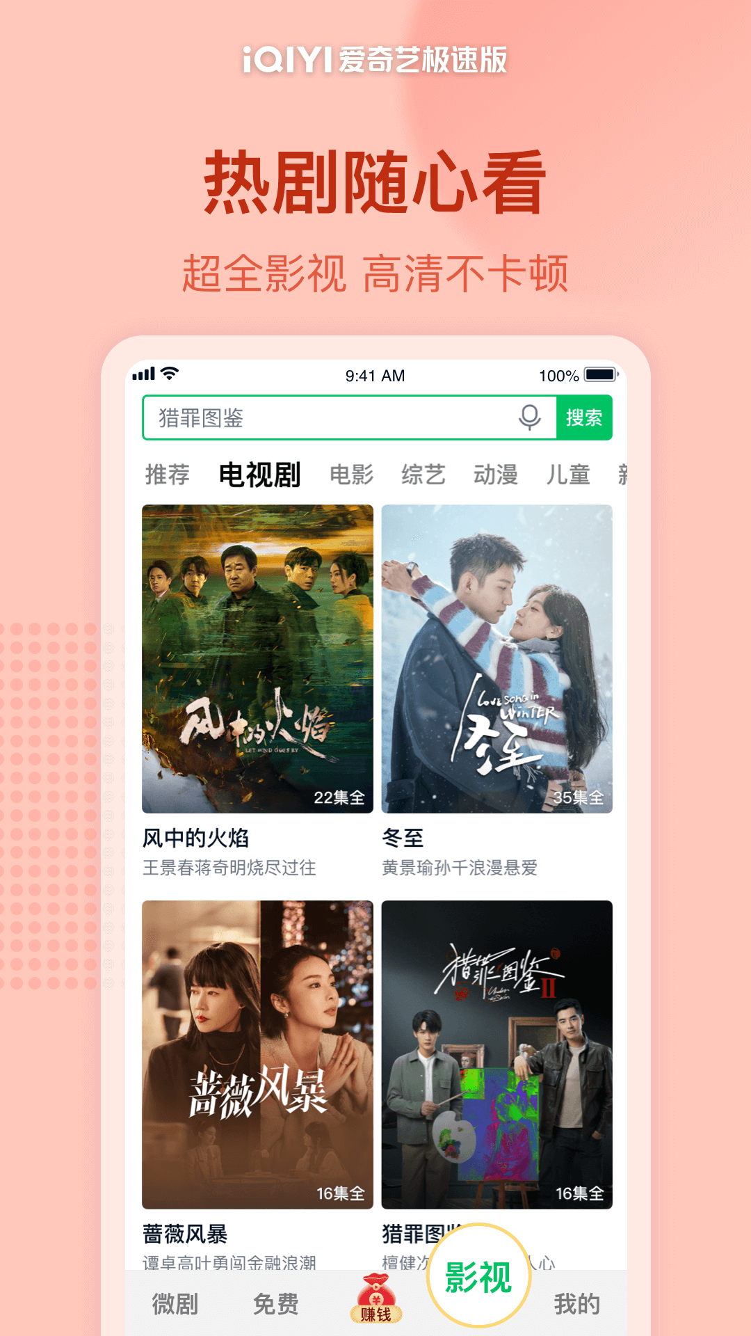 爱奇艺极速版具有较小的安装包,方便快速地下载并安装到手机上,节省存储空间。在视频质量方面,它同步了爱奇艺,涵盖爱奇艺的热门版权及自制影视综内容,包括电影、电视剧、综艺节目等,并提供流畅的视频播放体验,界面简洁,搜索结果清晰。当然了极速版也少不了看视频得福利的内容,邀请好友,看视频都能赚取收益,不要错过哦。