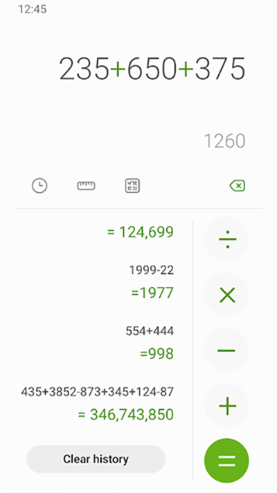 1、简单易用:三星计算器的界面简单易用,操作方便快捷;用户可以用单手完成各种计算操作;