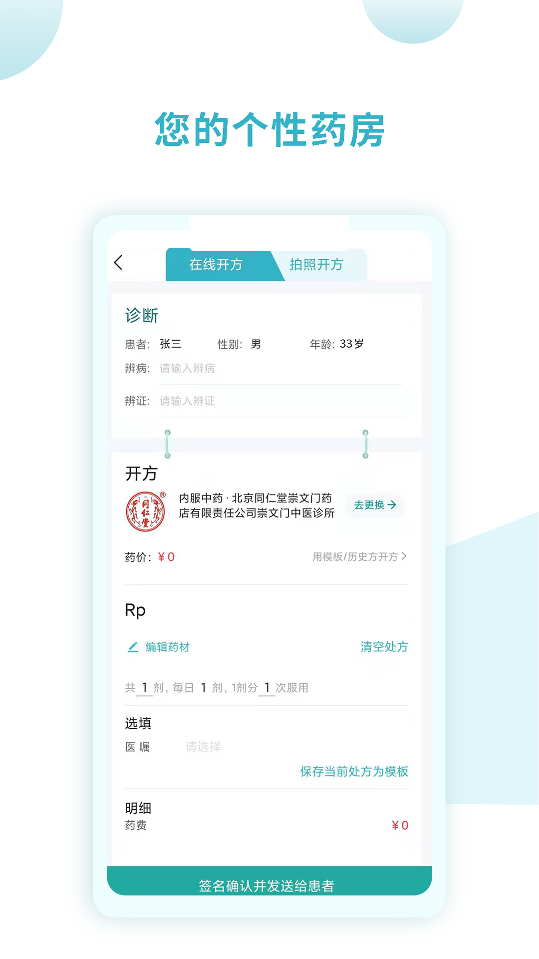电子处方系统:内置《中国药典》数据库,支持手写处方拍照识别与模板调用双模式,处方审核通过后自动生成用药指导单。