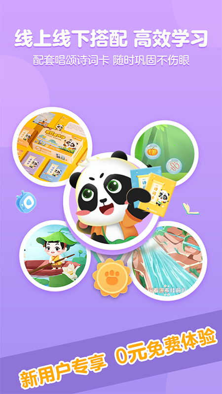 趣味动画演绎诗词创作故事,代入场景,建立对古诗的理解;唱诵结合强化诗词节奏及韵律感知,不担心发音和趣味性;知识拓展文学常识、历史典故拓展,提升文学素养;复习巩固古诗场景、意向通过图片等选择形式出现,互动练习,强化认知;诗词诵读专业老师领读,鼓励开口表达,精准评测;游戏复习记忆宝箱,趣味游戏复习,有学有练效果更好;个性化学习报告查漏补缺,及时反馈,激发学习兴趣;诗词电台无限回放,随时随地磨耳朵。