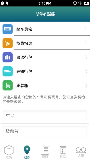 货物追踪功能,输入要查询货物的车号和货票号,可查看货物运输的最新消息;