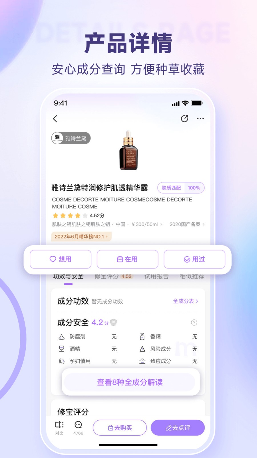 全成分表查询,化妆品安全星级算法查看产品成分,孕妇、敏感型肤质的护肤管家。