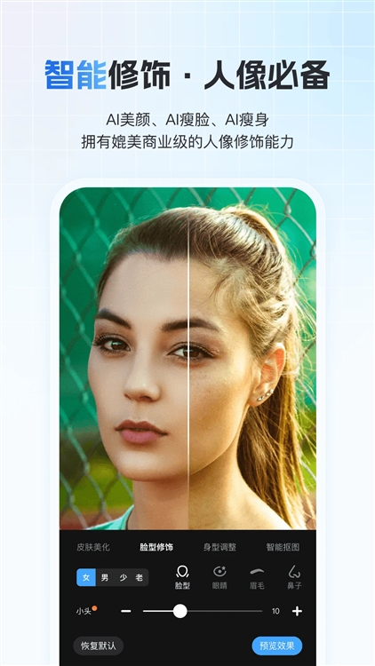 AI美颜、AI瘦脸、AI瘦身,拥有媲美商业级的人像修饰能力