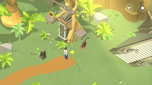 9.将香蕉交给路上沉睡的猴子,随后拿起左侧天秤上的金币,同样放置在架子上;