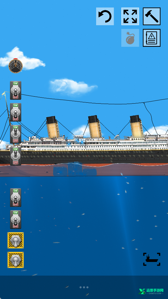 5、底部工具栏的锤子、电锯等工具,是破坏船体的核心道具,点击对应工具即可对船体进行切割、敲击等操作。