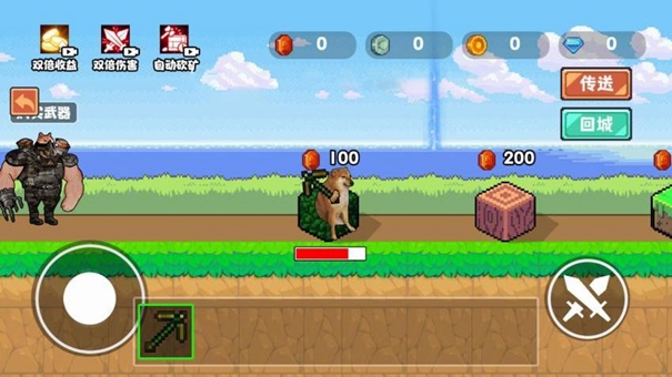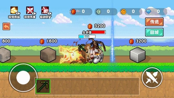 1、操作简单,左边控制角色移动,右边攻击键用来挖矿,轻松上手。