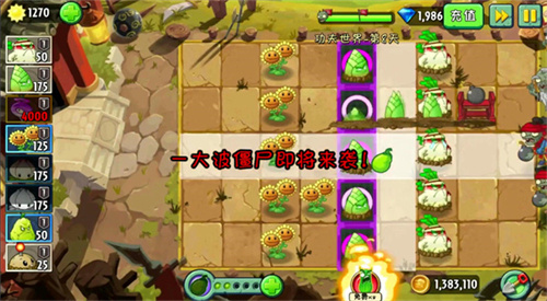 3、向前冲锋,斩断所经过两行内最右边的1~2棵植物;
