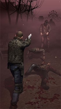 游戏内人物会自己往前移动,滑动屏幕人物会飞踢僵尸,踢到僵尸脑袋可以给他致命一击,点击屏幕会使用武器攻击,武器威力大,几枪即可击败僵尸,但需要注意子弹状况,屏幕左上角红色为血条绿色为弹药。