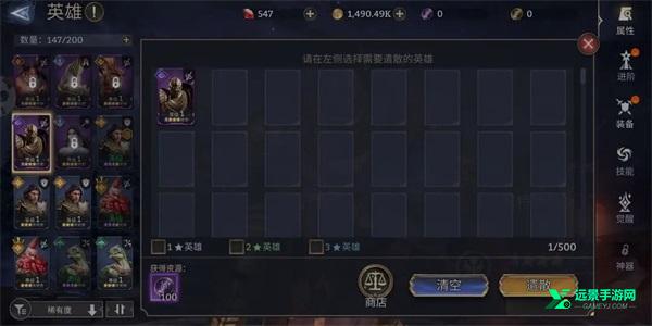 遣散一个史诗英雄获得100货币,相当于用上不了场的四个垃圾史诗就能兑换到。