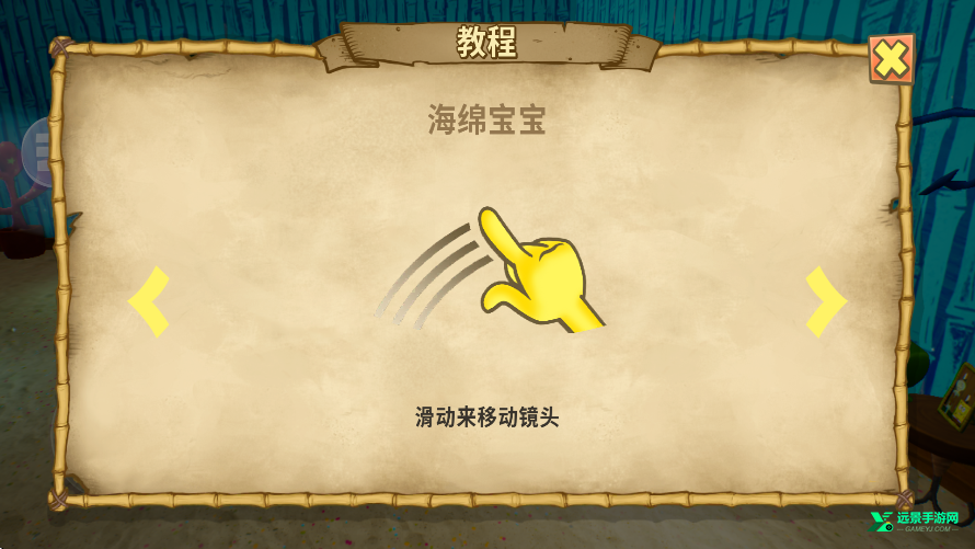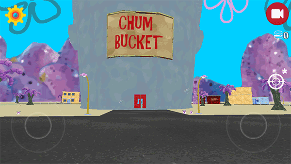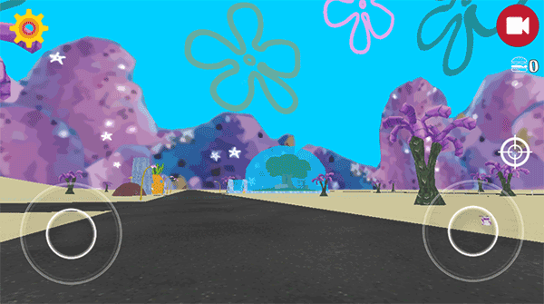 1、通过左侧的轮盘控制海绵宝宝移动,右侧的轮盘控制视角;