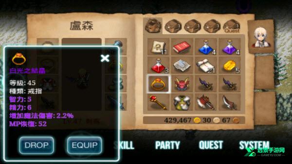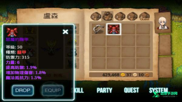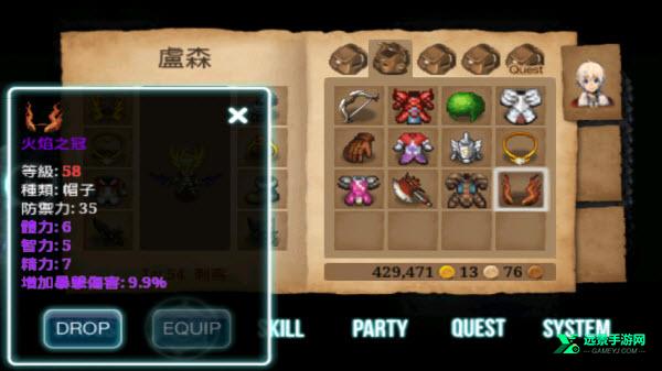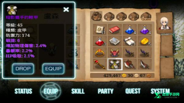 2.装备元素十分丰富武器、盾牌、衣服、靴子、饰品、手套等等,从八个不同的方面来强化自己。