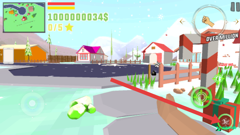 2、骑摩托触发STUNTMODE可做特技,跳坡时按特技键加分,注意躲小镇障碍房屋、树木,攒钱买载具或者道具。