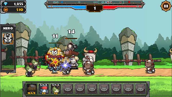 4、每通过第十级就是英雄挑战大怪级,玩家需要合理的召唤英雄战士去击败大怪