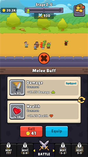 3.若遇到更优异的角色或道具,点击“装备”即可进行更换,换下的角色或能力可以出售以换取金币。