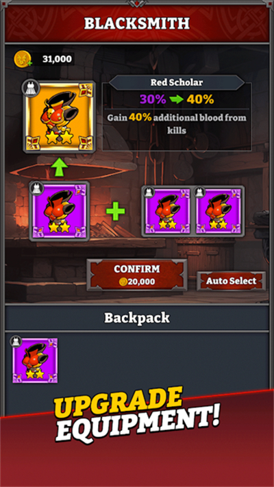 血色入侵游戏是一款竖屏的肉鸽闯关游戏,在游戏中你将化身吸血鬼贝拉开始古堡的冒险,游戏采用的是上帝视角,你可以直观的观察到地图中的敌人。在血色入侵手游中,作为古堡的主人,你需要对那些进入到古堡中的考古学家进行抹杀,只要靠近敌人到一定范围就可以自动汲取人类的献血并获得经验值,升级还可以解锁更多强力技能以及装备,你可以自行搭配技能组合打造不一样的肉鸽玩法。