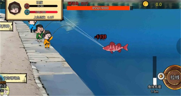 1.利用虚拟摇杆控制角色,点击抛竿后等待鱼儿上钩,随后进行拉线操作,游戏会实时显示鱼线长度。