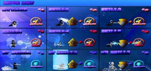 2、该界面直观展示全部按键组合对应的普攻、必杀技以及连携技释放指令。