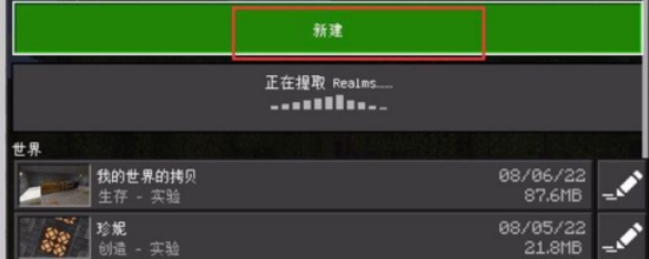 3、导入完成之后需要创建一个新世界,这里进入到世界,然后点击新建。