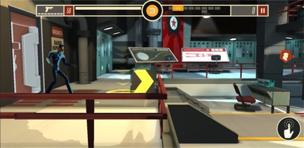 游戏虽然为闯关,但是却并没有什么很直接的目的,因此玩家要注意屏幕下方给出的提示并以此来在偌大的房间里四处闯荡,在路过有秘密的物体如箱子时屏幕会出现一个小按钮,如果玩家走过去后按钮就会消失不见,因此要时刻注意,而且游戏给出的要求并不相同,有的需要枪杀有的需要近身搏斗,而对有些俘虏就只能让他们投降了。