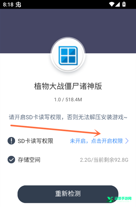 1、打开游戏,我们先点击相应的权限按钮。