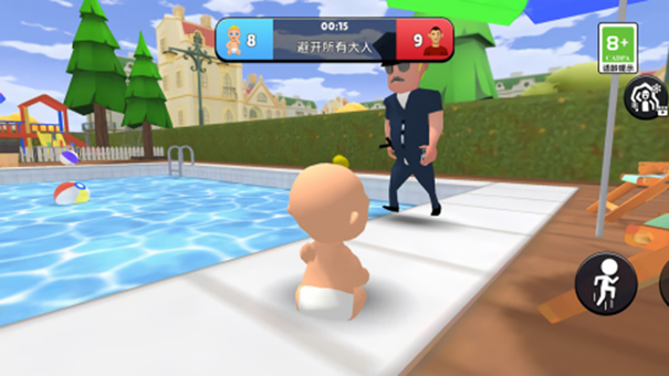 3、你可以在游戏中随意发挥家中的任何一个角色。婴儿必须在有限的时间里藏起来,躲避成年人。