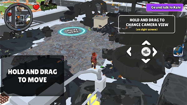 1、在游戏中你将扮演一名乞丐,运用左边遥感操控角色的移动,右边调整视角