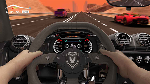 第一人称沉浸视角:从挡风玻璃内观察赛道,配合后视镜动态与车头颠簸动画,视线随转弯移动,代入感远超传统第三人称赛车。真实仪表盘UI与油门刹车反馈,仿佛手握方向盘。